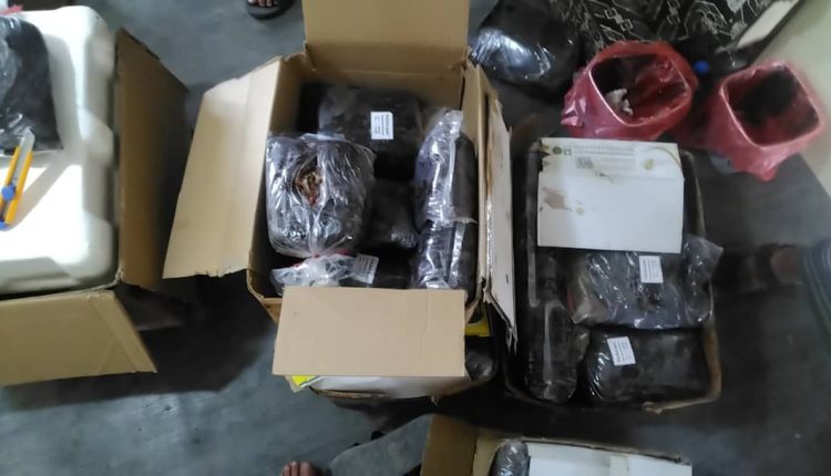 تمكنت كوادر الجمارك بالتعاون مع الأجهزة ذات العلاقة يوم الاربعاء الفائت من ضبط كمية 137 كيلوغرامًا بمقدار ثمانية كراتين من مادة الزبيب الممنوع، كانت مخبأة بإحكام داخل وسيلة نقل ومغلفة بأكياس ملفوفة بعجينة التمر ، واخرى بحوزه احد المسافرين وذلك في مركز عفار الجمركي.