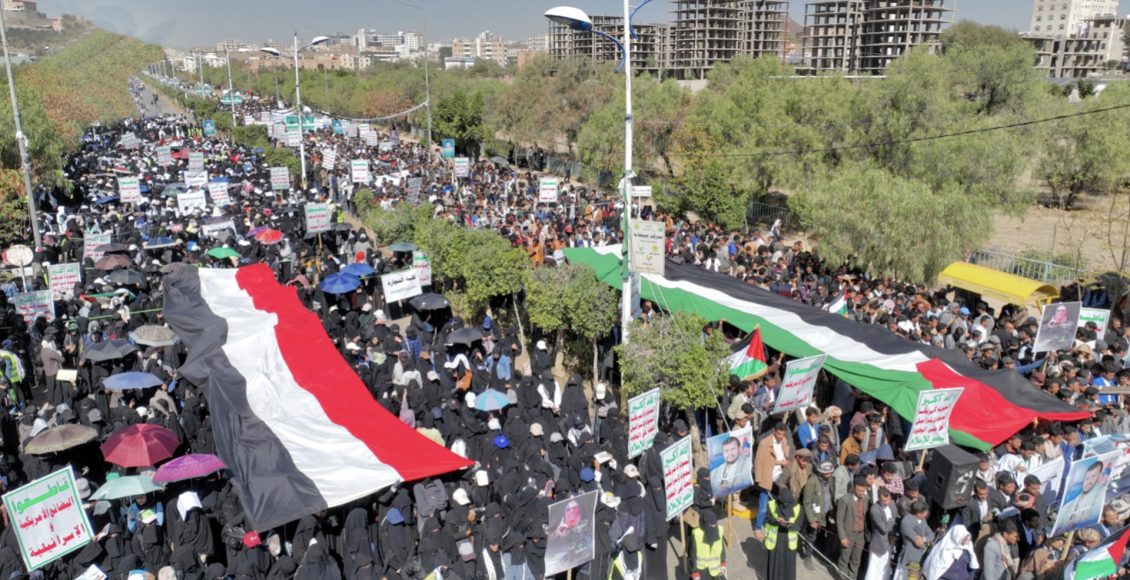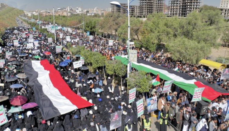نظمت قيادات وأكاديميو وطلبة جامعة صنعاء اليوم الأربعاء ، مسيرة حاشدة تضامناً مع الشعب الفلسطيني ونصرة الأقصى وتنديداً واستنكاراً للمجازر الوحشية التي يرتكبها الكيان الصهيوني بحق أطفال ونساء غزة تحت شعار ” ثابتون مع فلسطين حتى النصر وأمريكا أم الإرهاب “.