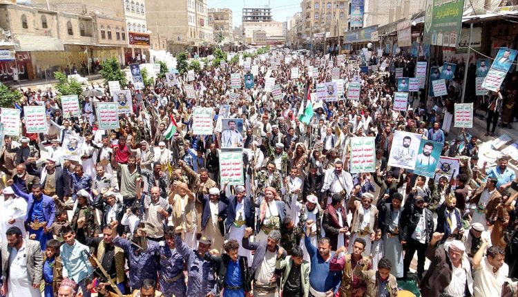 وأكد بيان صادر عن المسيرات أنه “واستمراراً في أداء واجبنا، وثباتاً على الموقف المحق والمشرف ليمن الإيمان والحكمة والجهاد، خرجنا اليوم في المسيرات المليونية مساندة للشعب الفلسطيني المسلم المظلوم، ورداً على جرائم العدوان الأمريكي البريطاني الصهيوني على بلدنا، مجددين العهد والولاء لله ولرسوله صلوات الله عليه وعلى آله، ولأعلام الهدى أوليائه، والبراءة من أعداء الله أئمة الكفر أمريكا وإسرائيل في الذكرى السنوية للصرخة في وجه المستكبرين”.