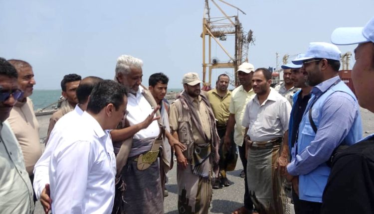 وزير النقل وفريق أممي يتفقدون أضرار العدوان الصهيوني على ميناء الحديدة