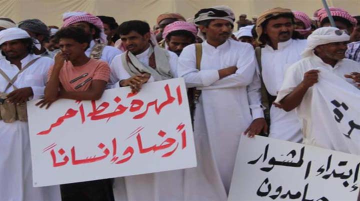 وأكد بيان صادر عن لجنة الاعتصام السلمي لأبناء المهرة تلقت وكالة الأنباء اليمنية (سبأ) نسخة منه، أن وصول قوات بريطانية إلى المحافظة بزعم حماية المياه البحرية، أحد المخططات التآمرية للسيطرة على ثروات اليمن، وانتهاك سافر للسيادة الوطنية.