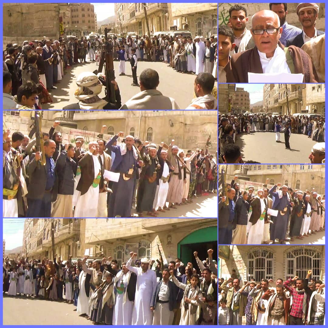 وعبر أبناء حارة الحكمة في بيان الوقفة التي أقيمت عقب صلاة الجمعة مباركتهم لإنتصارات الجيش واللجان في عملية البنيان المرصوص والإنجازات الأمنية المتمثلة بإلقاء القبض على عدد من شبكات التجسس والعمالة التي وظفها العدوان، مؤكدين مواصلتهم الصمود ورفد الجبهات بالمال والرجال حتى تحقيق النصر.