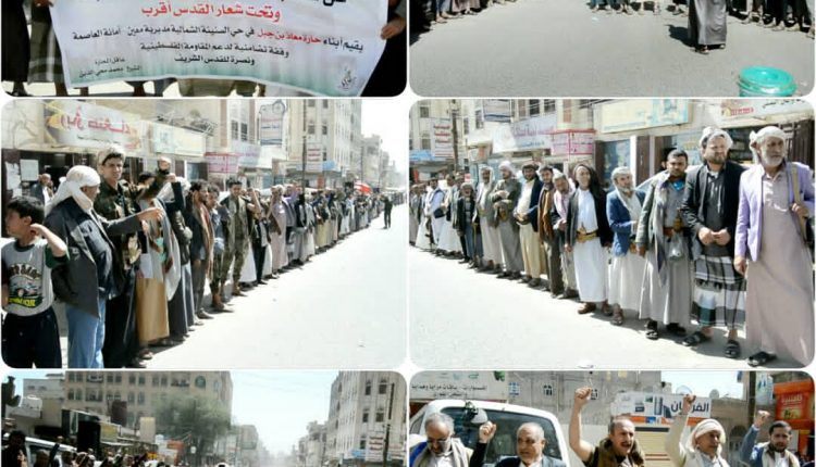 وفي وقفتهم المركزية الحاشدة، جدد أبناء حي القبة، العهد للقدس ولكل المقدسات بالثبات والنصرة حتى تطهير أولى القبلتين من رجس اليهود وتحرير ثاني القبلتين من دنس آل سعود.