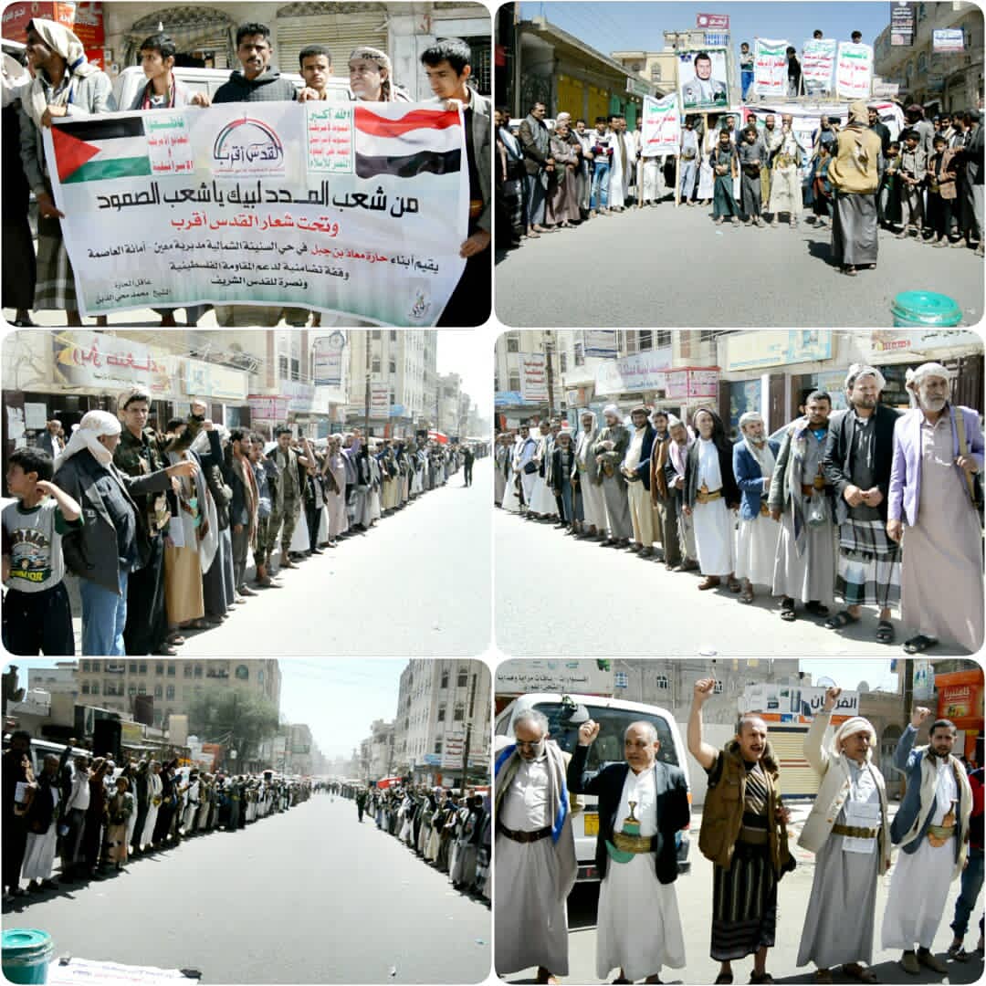 احتشد المئات من أبناء حيي السنينة والقبة بمديرية معين في وقفات قبلية مسلحة، صباح اليوم، مباركين الإنتصارات التاريخية التي سطرتها فصائل المقاومة الفلسطينية على قوات الإحتلال الصهيوني.