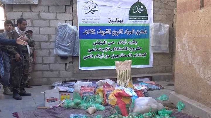 وزع أبناء حي البليلي بمديرية الوحدة اليوم السبت سلات غذائية ووجبات جاهزة على الأسر المحتاجة من أبناء الحي بمناسبة قدوم ذكرى المولد النبوي الشريف عليه وعلى آله أتم الصلاة والتسليم.