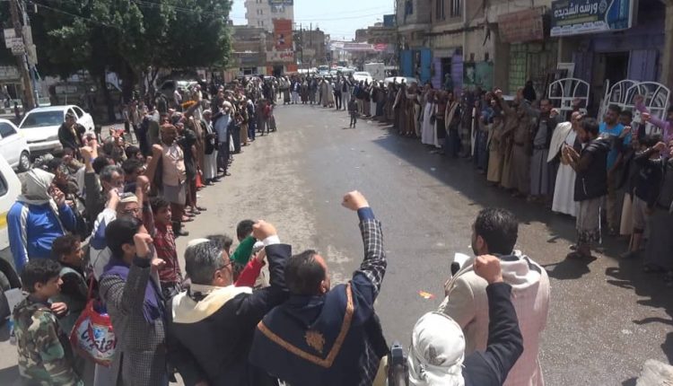 أبناء حي البليلي بمديرية الوحدة ينددون بجريمة مرتزقة العدوان بحق آل سبيعيان