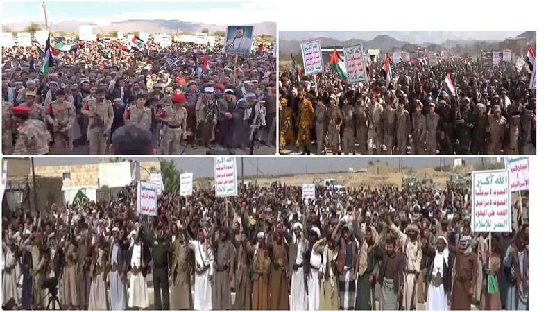 كما خرج أبناء مديرية صرواح في مسيرة حاشدة بحضور محافظ المحافظة علي محمد طعيمان، عبر المشاركون فيها عن التضامن مع الشعب الفلسطيني والاستعداد لخوض معركة الفتح الموعود لتحرير القدس من الكيان الغاصب.