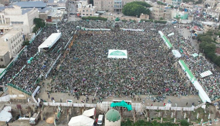 ورفعت الحشود التي اكتظت بها ساحات مركز المحافظة ومستبأ وعبس، اللافتات المعبرة عن الحب والإجلال للرسول الأعظم والابتهاج بذكرى مولده.. مرددة العبارات والشعارات المؤكدة على عمق الارتباط الوجداني برسول الإنسانية والسير على نهجه.