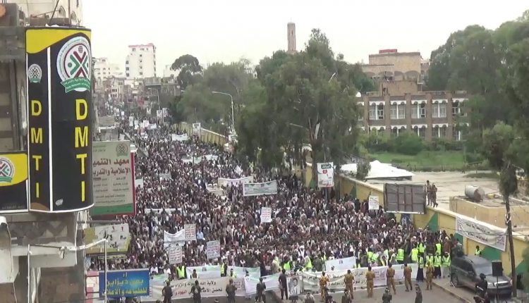 احتشد أبناء مديريات معين والتحرير وصنعاء القديمة صباح اليوم بصنعاء لإحياء ذكرى يوم الولاية تحت شعار ” وانصر من نصره”.