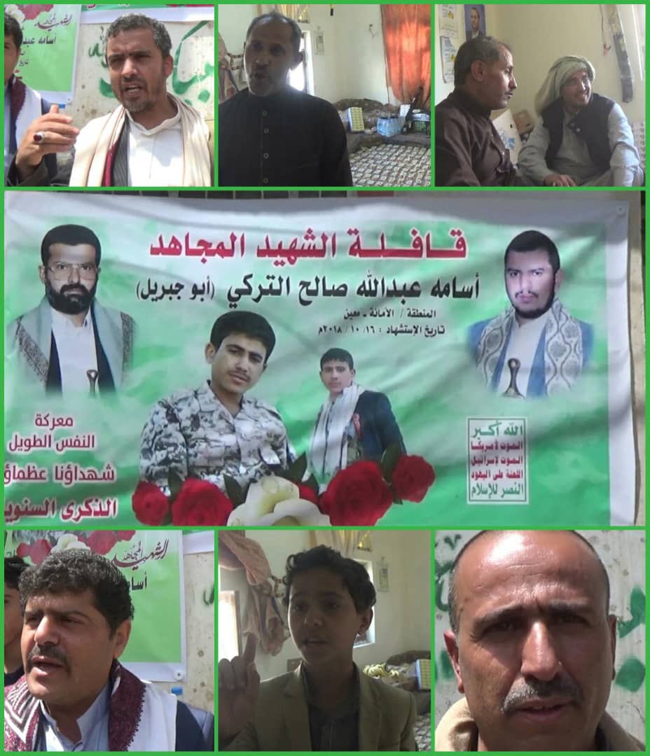 جهزت أسرة الشهيد أسامة عبدالله التركي بمديرية معين بالأمانة صباح اليوم قافلة غذائية في الذكرى الأولى لإستشهاد الشهيد أسامة التركي. وفي فعالية تسيير القافلة ألقى الأستاذ خالد المداني المشرف العام لأمانة العاصمة كلمة أشاد فيها بالبطولات العظيمة التي قدمها الشهيد أسامة التركي في مقارعة العدوان السعودي الأمريكي ولفت المداني إلى روح البذل والعطاء لأسرة الشهيد التي أبت إلا أن تواصل البذل والعطاء في سبيل الله بالمال ومقاسمة لقمة العيش مع المجاهدين في الجبهات. وعن رمزية القافلة التي تتزامن مع تدشين فعاليات المولد النبوي قال الأستاذ حسين المداني إن أسر الشهداء ومنهم آل التركي ساروا على خطى النبي الأعظم وآل بيته وأنصاره اليمنيين من الاوس والخزرج في التضحية والإيثار على النفس. وفي تصريحات لمركز معين الإعلامي قال العميد عبدالله التركي والد الشهيد إن هذه القافلة ليست الأولى ولن تكون الأخيرة في دعم ومساندة ابطالنا الميامين في جبهات العزة والكرامة كما أكدت والدة الشهيد على أن بقية الأسرة ستواصل ما بدأه إبنها الشهيد في مواصلة الجهاد وبروحية الإيمان قال أبو زيد التركي اخو الشهيد إنهم سيبذلون الغالي والنفيس ويجاهدون بالنفس والمال حتى النصر المحتوم. حضر تسيير القافلة الأستاذ سامي شرف الدين المشرف العام لمديرية معين والأستاذ محمد الحمزي متابع حي السنينة الجنوبية وعدد من جيران ومحبي الشهيد.
