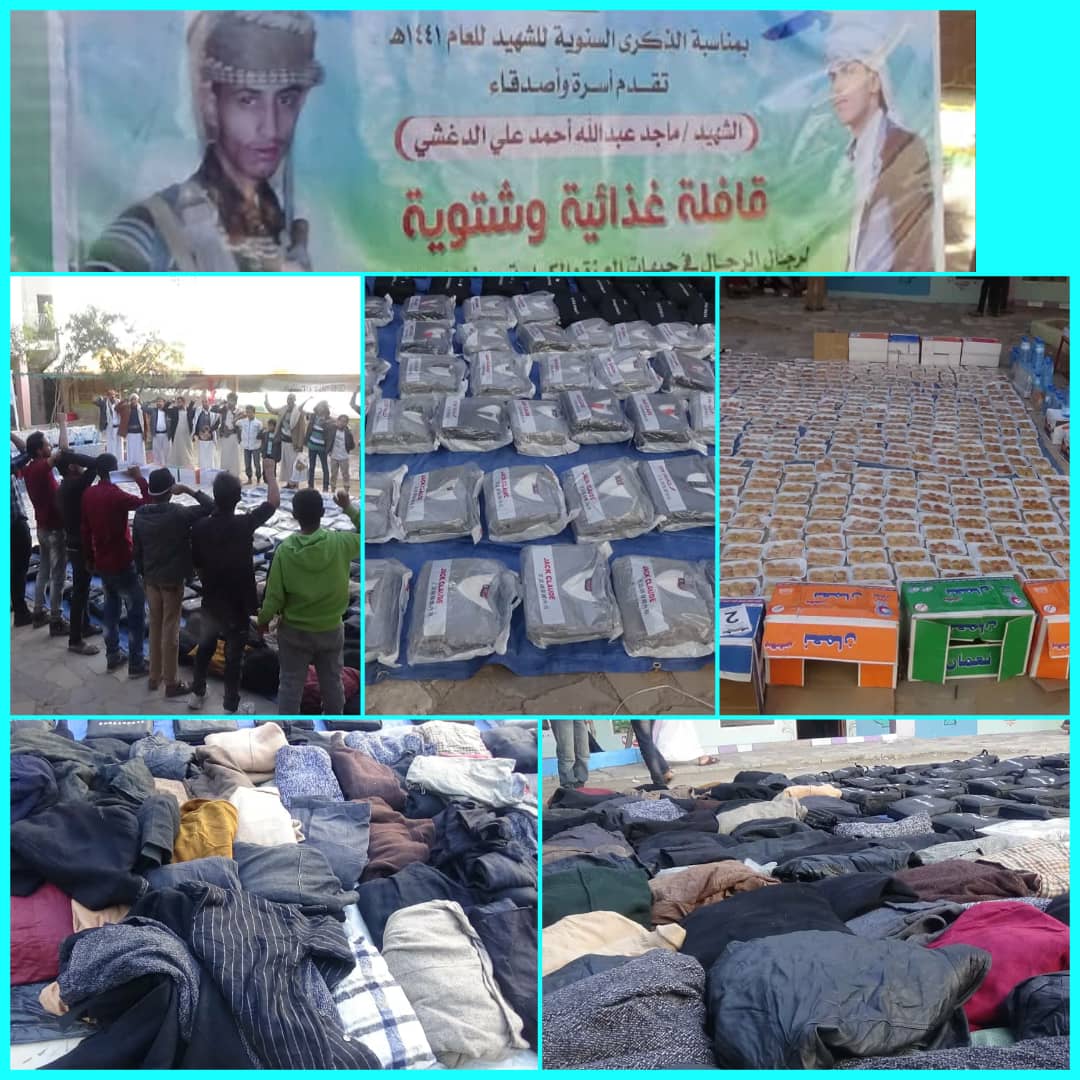 أسره الشهيد ماجد الدغشي تسير قافلة للمجاهدين On يناير 20, 2020 Share أسرة وأصدقاء الشهيد ماجد الدغشي بحي الزراعة بمديرية معين بالأمانة يسيرون قافلة غذائية وشتوية للمرابطين بجبهات العزة والكرامة بحي الزراعة مديرية معين صنعاء-الأمانه الأحد2020-1-19م. Share FacebookTwitterGoogle+ReddItWhatsAppPinterestEmail