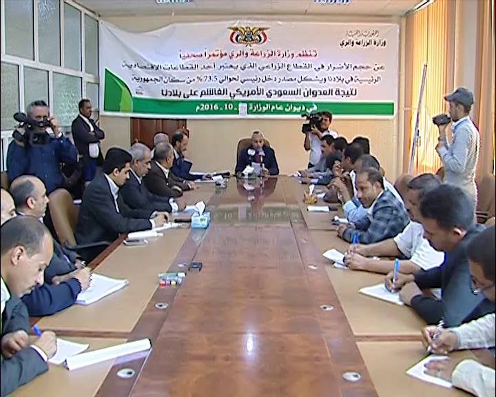 وقال القائم بأعمال وزير الزراعة والري المهندس علي الفضيل في مؤتمر صحفي بصنعاء: إنه تم حصر أربعة آلاف و948 موقعاً زراعياً متنوعاً تعرض للقصف المباشر من طيران العدوان وبوارجه الحربية بينها 1016 مزرعة تنتج أنواع مختلفة من محاصيل الحبوب والخضروات والفواكه والبقوليات.