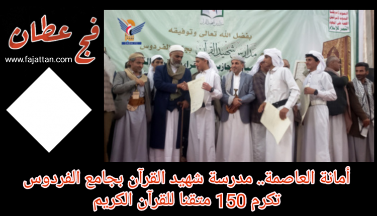 أمانة العاصمة.. مدرسة شهيد القرآن بجامع الفردوس تكرم 150 متقنا للقرآن الكريم