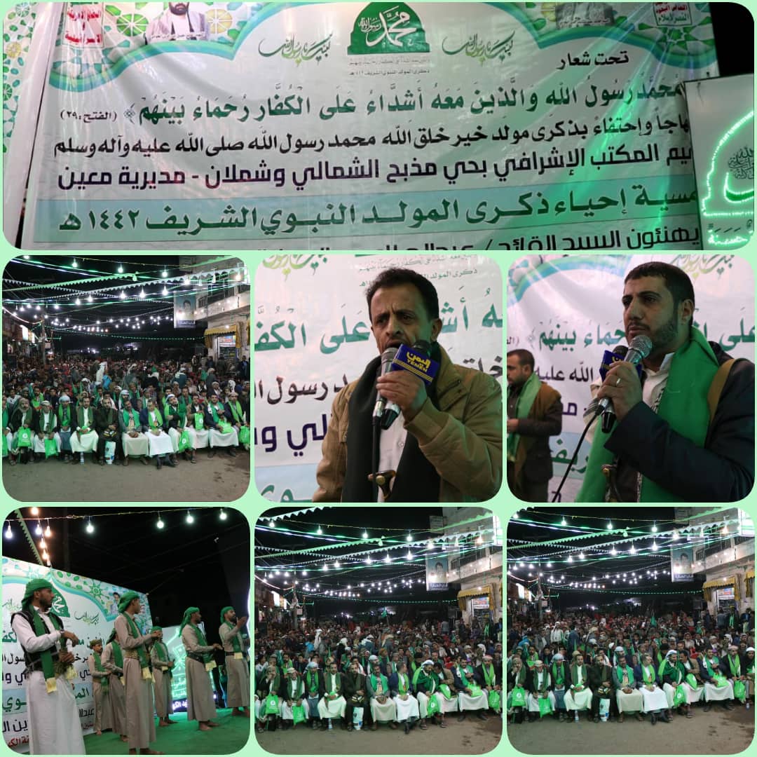 فرحا وإستبشارا بمولد النور والضياء، تتواصل أمسيات المولد النبوي الشريف بمديرية معين بالأمانة التي دشنت منتصف شهر صفر 1442 هجرية.