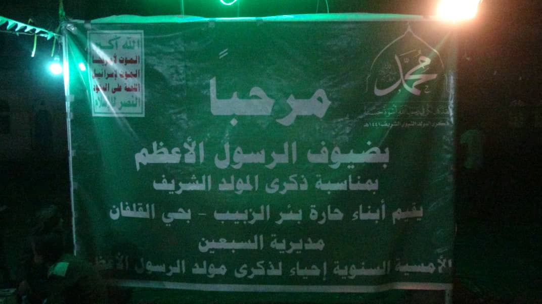 ابتهاجا بقدوم المولد النبوي الشريف لعام 1441ه وتحت شعار ( بولائنا لرسول الله ( ص ) سننتصر على أعدائنا ) نظم أبناء حارة بير الزبيب حي القلفان بمديرية السبعين أمسية ثقافية وشعرية ( ليلية ) بحضور عدد من الضيوف منهم معاون المشرف العام للمديرية عبدالله سمينة وعدد من أبناء ووجهاء وشخصيات الاجتماعية بالحي . وقد تخللت الأمسية بداية بأيات من الذكر الحكيم تلاه النشيد الوطني وعدد من الفلاشات والشعر والاناشيد جميعها تتحدث عن فرحة وابتهاج اليمنين بقرب ذكرى المولد النبوي الشريف وتأتي هذه الأمسية ضمن فعاليات وأنشطة ينظمها المجلس المحلي والأشرافي بمديرية السبعين في جميع الأحياء وفي الختام اكد سمينة ان يتم استغلال باقي الايام حيث وقد قربت الذكرى في الحشد وبالشكل الكبير الذي سيكون لهو اثر في رسم وتغير المعادلة المقبلة.