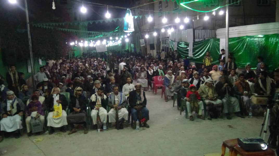 ابتهاجا بقدوم المولد النبوي الشريف لعام 1441ه وتحت شعار ( بولائنا لرسول الله  ( ص ) سننتصر على أعدائنا )  نظم أبناء حارة الرحاب  بمديرية السبعين  أمسية ثقافية وشعرية ( ليلية ) بحضور عدد من الضيوف منهم  معاون المشرف العام للمديرية عبدالله سمينة  وعدد من أبناء ووجهاء وشخصيات الاجتماعية  بالحي .  وقد تخللت الأمسية بداية بأيات من الذكر الحكيم تلاه النشيد الوطني وعدد من الفلاشات والشعر والاناشيد  جميعها تتحدث عن فرحة وابتهاج اليمنين بقرب ذكرى المولد النبوي الشريف   وتأتي هذه الأمسية ضمن فعاليات وأنشطة ينظمها المجلس المحلي والأشرافي بمديرية السبعين في جميع الأحياء  وفي الختام اكد  سمينة ان يتم استغلال باقي الايام حيث وقد قربت الذكرى في الحشد وبالشكل الكبير الذي سيكون لهو اثر في رسم وتغير المعادلة المقبلة.