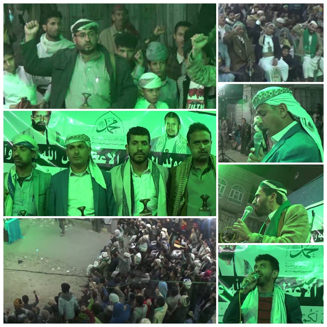 استمرارا لفعاليات المولد النبوي الشريف بمديرية معين بالأمانة أقام أبناء حارات ” الاشراق – الصمود – النصر – الأبرار” بحي السنينة الشمالية أمسية فنية وخطابية. واستهلت الأمسية بأيات محكمات من كتاب الله وبالنشيد الوطني وترديد شعارات المناسبة. كما ألقيت عدد من الكلمات والقصائد والأناشيد المعبرة وأدت فرقة الرقص الشعبي عدد من رقصات البرع ابتهاجا وفرحا بحلول ذكرى المولد النبوي الشريف. ورفع أبناء الحارات تهانيهم لقائد الثورة وللشعب اليمني والأمتين العربية والإسلامية بالمولد النبوي الشريف داعين كل أبناء اليمن للمشاركة في الفعاليات المركزية التي ستقام يوم السبت القادم الموافق الثاني عشر من شهر ربيع الأول. حضر الأمسية الأستاذ محسن الفقيه متابع الحي وعدد من الشخصيات الإجتماعية وجمع غفير من المواطنين.