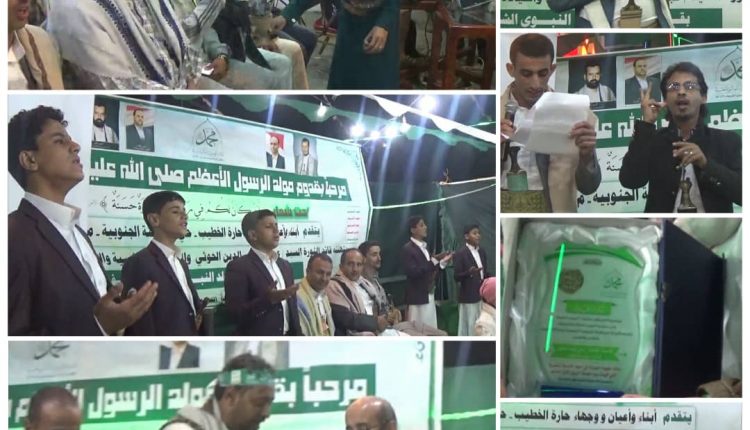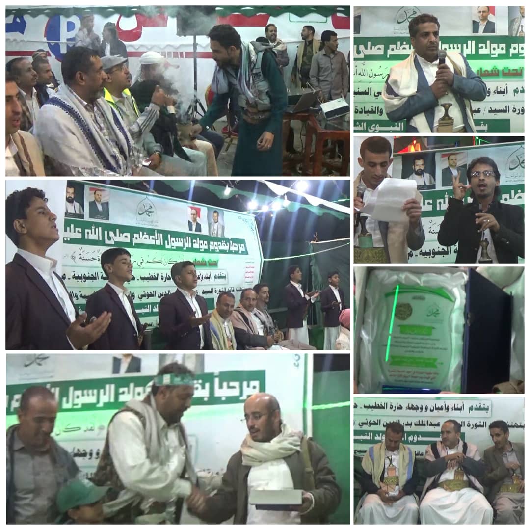 استمرارا لفعاليات المولد النبوي الشريف بمديرية معين بالأمانة أقام أبناء حارة الخطيب بحي السنينة الجنوبية أمسية فنية وخطابية حاشدة. وبعد افتتاح الأمسية بتلاوة عطرة لأيات محكمات من كتاب الله ألقيت كلمة ترحيبية بالحاضرين عن أبناء الحي. وألقى عدد من الشعراء وعلى رأسهم الشاعر الكبير معاذ الجنيد قصائد شعرية متنوعة بالعامية والفصحى معبرة عن المناسبة كما أدت فرقة الصادق الإنشادية عدد من الزوامل والأناشيد والرقصات الشعبية ابتهاجا بحلول ذكرى المولد النبوي الشريف على صاحبه وآله أفضل الصلاة وأتم التسليم. وتميزت الأمسية بتوجيه رسائل مختلفة عن ذكرى المولد النبوي الشريف ومظلومية الشعب اليمني باللغة الإنجليزية ولغة الإشارة للصم والبكم كما تفردت الأمسية بتكريم الشاعر معاذ الجنيد والأستاذ المجاهد سامي شرف الدين وعدد من المشاركين بالفعالية بدروع تذكارية مقدمة من أبناء حارة الخطيب. وفي كلمته أشاد الأستاذ سامي شرف الدين المشرف العام للمديرية بجهود أبناء حارة الخطيب وفي مقدمتهم الشيخ محمد العنسي لإحياء مناسبة المولد النبوي الشريف وبالشكل اللائق برسولنا الأعظم، صلوات الله عليه وعلى اله الطيبين الطاهرين، داعيا كل اليمنيين وفي مقدمتهم أبناء مديرية معين إلى المشاركة الفاعلة في الفعالية المركزية بأمانة العاصمة يوم الثاني عشر من شهر ربيع الأول. حضر الأمسية عدد من الشخصيات من الجانب الإشرافي والرسمي والشعبي وجمع غفير من المواطنين.