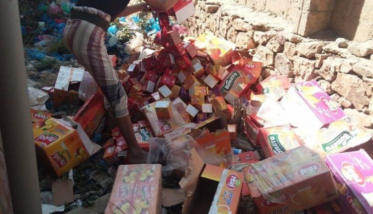 إتلاف مواد غذائيةوبضائع ممنوعة التدوال والعاب في جمارك تعز