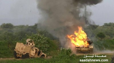 إحراق 3 آليات عسكرية سعودية في منطقة الخوبة بجيزان.
