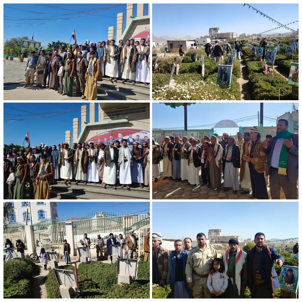 حيث ابتدأت بزيارة ضريح الرئيس الشهيد / صالح الصماد وبعد ذلك قاموا بزياره روضة الشهداء ببيت بوس ثم قاموا بزياره روضة الشهيد الصماد”