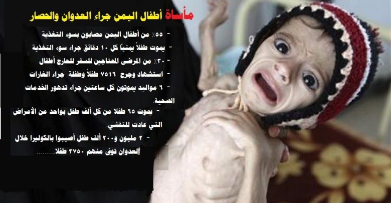 أوضح وزير الصحة العامة والسكان الدكتور طه المتوكل، أن أكثر من خمسة آلاف طفل يمني يصابون سنويا بالأورام نتيجة أسلحة تحالف العدوان الأمريكي السعودي الإماراتي الغاشم التي من بينها المحرمة دولياً. ودعا وزير الصحة خلال فعالية رسمية نظمتها وزارة الصحة اليوم كشفت فيها عن أرقام صادمة لمأساة الأطفال اليمنيين خلال خمس سنوات من العدوان والحصار، إلى تسيير جسر جوي لإنقاذ الاطفال الجرحى والمصابين بالأورام وجميع الأمراض المهددة لحياتهم بالموت. وطالب المتوكل الامم المتحدة والمنظمات الانسانية بإيضاح مصير اموال المساعدات.. متسائلاً “هل يجري اهدارها على توفير سيارات وخدمات لا تعني اليمنيين بشيء؟”. وقال “لانطالب في اليوم العالمي للطفل الأمم المتحدة بألعاب وترفيه بل نطالب بحضانات للأطفال حتى يأخذوا حقهم في الحياة”. وأوضح وزير الصحة أن الأمم المتحدة لم توفر إلى اليوم طائرة لإنقاذ المرضى المحتاجين للعلاج في الخارج.. داعياً بشكل مباشر منسقة الأمم المتحدة في اليمن إلى إدخال الحضانات وأجهزة التنفس الصناعي للمواليد، وإدخال الأدوية المنقذة للحياة. وخاطب المتوكل الأمم المتحدة قائلاً “كفى ذرفا للدموع عند مشاهدة أطفالنا يقتلون ولانرى المصداقية في تقاريركم الدولية أو دعما يستحقه هذا الوضع المأساوي”. وكشفت وزارة الصحة خلال الفعالية أن خمسة ملايين و400 ألف طفل مصابون بسوء التغذية منهم 2 مليون و900 ألف طفل دون الخامسة وبما يعادل 55% من الأطفال اليمنيين .. وأكدت أن 30% من المرضى المحتاجين للسفر بغرض العلاج في الخارج هم من الأطفال وقد توفي العشرات منهم، .. فيما سقط نحو 7516 طفلاً وطفلة يمنيين بين شهيد وجريح جراء الغارات الجوية المباشرة لطيران تحالف العدوان على اليمن. وأضافت أنه ونتيجة استمرار العدوان والحصار ومنع وصول الغذاء والدواء وانتشار الأمراض والأوبئة يموت طفلاً يمنياً كل 10 دقائق بسبب سوء التغذية، و6 مواليد يموتون كل ساعتين بسبب تدهور خدمات الرعاية الصحية كما يموت 65 طفلا دون سن الخامسة من كل 1000 طفل بواحد من الأمراض التي عادت للتفشي بقوة جراء العدوان والحصار المستمرين منذ 5 سنوات كما أضافت أن 2 مليون و200 ألف طفل أصيبوا بالكوليرا خلال العدوان توفي منهم 3750 طفلا .