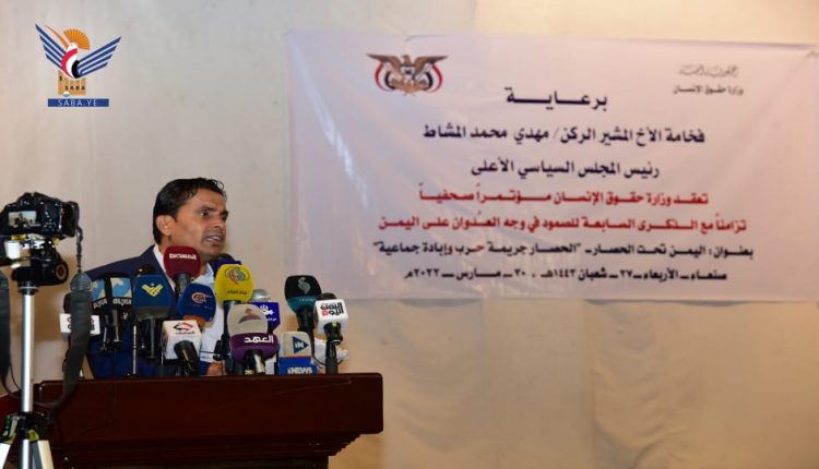 وفي المؤتمر الصحفي، وإطلاق التقرير السابع، أكد القائم بأعمال وزير حقوق الإنسان، علي الديلمي، أن التقرير السابع، الذي يتزامن إطلاقه مع مرور سبعة أعوام من الصمود في وجه العدوان والحصار الأمريكي- السعودي- الإماراتي، يلخص انتهاكات وجرائم تحالف العدوان التي ترقى إلى جرائم ضد الإنسانية وإبادة جماعية، وكشفها للرأي العام العالمي.