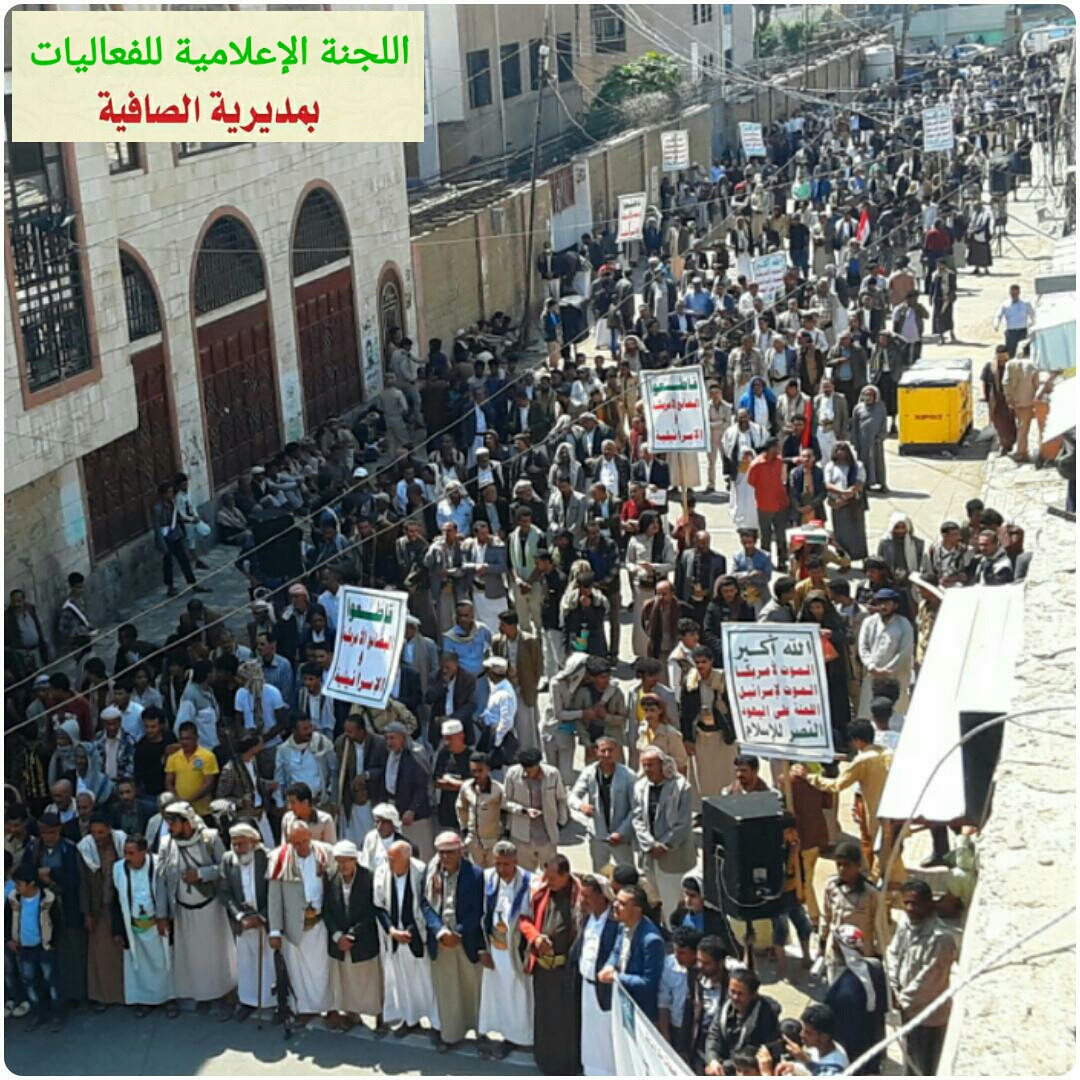وكانت قيادة المنطقة التعليمية بالصافية ممثلة بمديرها د/ سيف البسارة والنواب ورؤساء الاقسام ومدراء ووكلاء المدارس والمعلمين قد شاركوا مع أبناء الأحياء بالمديرية في إحياء ذكرى استشهاد الإمام زيد عليه السلام وأشاروا الى أهمية وعظمة إحياء هذه الذكرى هذه لاستلهام الدروس والعبر من مدرسة آل بيت رسول الله وأعلام الهدى .