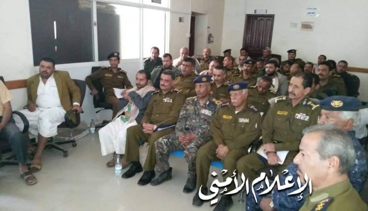 ترأس اليوم  العميد الركن معمر صالح هراش مدير عام شرطة  العاصمة  إجتماعا موسعا لقيادات الأمن في العاصمة  حضره نواب ، ومساعدو مدير عام شرطة العاصمة  ، وضم مدراء الفروع والإدارات ، ومدراء المناطق الأمنية بأمانة العاصمة ونوابهم . وقد ناقش الإجتماع الخطة الأمنية الخاصة بتأمين الغعاليات الجماهرية والرسمية  التي ستقام في العاصمة إحتفاء بالمولد النبوي الشريف على صاحبه وعلى آله أفضل الصلاة والتسليم . و حث العميد هراش على رفع اليقظة الأمنية والحفاظ على الجاهزية  في ظل إستمرار العدوان الغاشم  على بلادنا ، الذي يسعى إلى إيجاد أي خرق أمني وزعزعة الإستقرار .   وأكد اهمية التنسيق بين مختلف الوحدات الأمنية وارتباطها بالقيادة والسيطرة ، لسهولة الحصول على المعلومات الأمنية، اثناء متابعة اثناء ،  المشبوهين،  المطلوبين أمنيا .  ولفت العميد هراش إلى أهمية الإلتزام بالدوام الرسمي في جميع المناطق الأمنية   ومراكز الشرطة . كما شدد على ضرورة العمل على تجويد العمل الأمني وتلافي السلبيات.  وأكد مدير عام شرطة العاصمة  على أهمية توطيد علاقة رجال الأمن بالمواطنين ، عبر تقديم الخدمات لهم واستقبال شكاواهم والتعامل معهم بأخلاق عالية وبروح المسئولية ، والتحلي بالصدق  الأمانة التي هي من أهم صفات رجل الأمن  .   ووجه مدراء أمن مديريات العاصمة    بالإلتزام بالمدة القانونية للحجز في مراكز الشرطة ، وسرعة استكمال التحقيقات وإحالة المتهمين للنيابة .    و في نهاية الإجتماع عبر العميد الركن معمر  هراش عن شكره لقادة رجال أمن العاصمة للجهود الأمنية التي يبذلونها ، واشاد بمستوى المهنية واليقظة العالية لدى منتسبي ألأمن في العاصمة ، والتي تجلت في  النجاحات الأمنية التي تتحقق كل يوم.