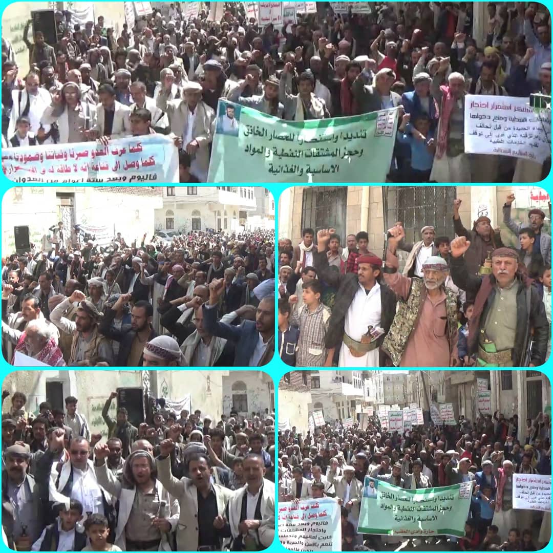 اختتمت صباح اليوم فعاليات أبناء مديرية معين المنددة بالحصار الجائر على الشعب اليمني ومنع شحنات المشتقات النفطية والمواد الأساسية والغذائية من الدخول لميناء الحديدة.