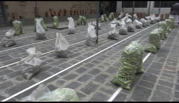 ففي سبعه أحياء من المديرية يستمر فعالين الخير بتوزيع وجبات جافة مكونة من البطاط والكوسة والأرز والزبادي ل2100 أسرة