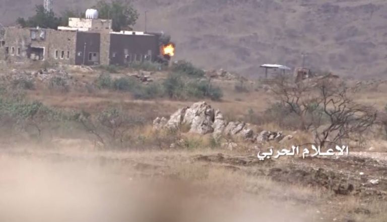 كما تظهر المشاهد تحركات لجنود سعوديين أثناء استهداف المبنى ووصول قذائف الهاون إلى تجمعاتهم.