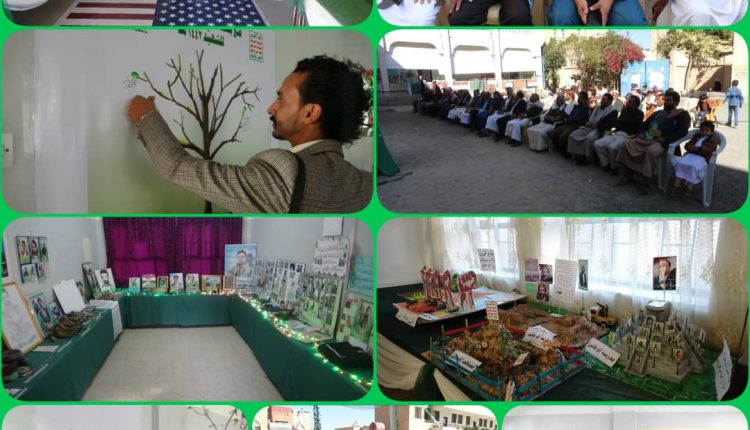وبحضور مهيب من المجلس الإشرافي لأنصار الله وممثلي مؤسسة الشهداء وشخصيات اجتماعية وتربوية كان افتتاح معرض الشهيد الذي حوى مجسمات بديعة الصنع والمغزى بأنامل أبنائنا وبناتنا الطلاب والطالبات، حملت آيات النصر والعزة في مواقع الاقتحامات والانتصارات فمصنوعات الحرب والقوة من إنتاج قواتنا العسكرية الجبارة، والذي يعتبر من ثمرات انتصار الدم والأشلاء الطاهرة لشهداء الحق والموقف