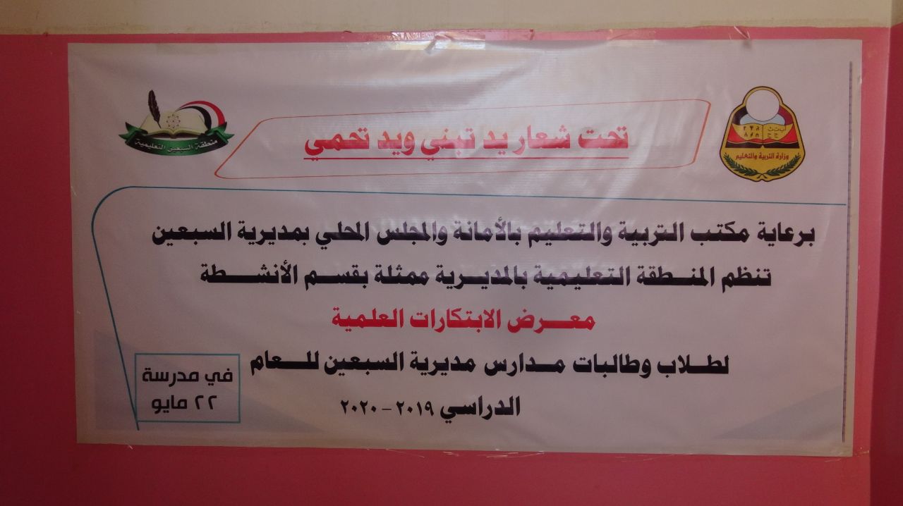 افتتاح معرض لابتكارات واختراعات طلاب مديرية السبعين برعاية المنطقة التعليمية بالمديرية  بحضور زياد الرفيق مدير مكتب التربية بالامانة ومحمد الوشلي مدير عام مديرية السبعين .