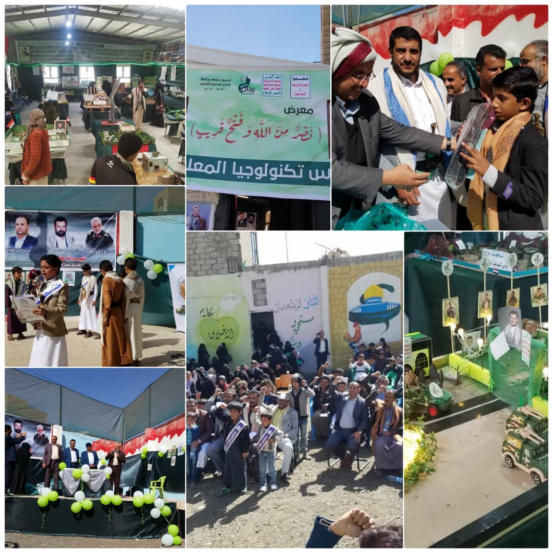 افتتح الأستاذ زياد الرفيق مدير عام مكتب التربية والتعليم بالأمانة صباح اليوم معرضا للصور والرسوم التشكيلية بمدرسة تكنولوجيا المعلومات -طلاب بإشراف مكتب التربية والتعليم بمديرية معين وذلك بمناسبة حلول الذكرى السنوية للشهيد.  وقد طاف الحضور بأجنحة المعرض الذي احتوى على عدد من الصور والمجسمات والرسوم المتميزة التي تحكي مسيرة حياة الشهداء العظماء الذين ضحوا من أجل تحقيق العزة والكرامة لليمن واليمنيين وتوثق جرائم العدوان الأمريكي السعودي على بلادنا.  وقد عبر الحضور عن اعجابهم بمحتويات المعرض التي تعكس مكانة الشهداء الأبرار وأهمية تخليد ذكراهم وغرس حب الشهادة في نفوس الأجيال القادمة.  حضر الإفتتاح الأستاذ سامي شرف الدين المشرف العام للمديرية والأستاذ علي الديلمي مدير مكتب التربية والتعليم بالمديرية والقاضي سامي حميد متابع حي مذبح الشمالي وعدد من الشخصيات الإجتماعية وجمع من أهالي الشهداء.  وأقيمت على هامش المعرض فعالية فنية وخطابية اختتمت بتكريم عدد من الطلاب من أبناء وذوي الشهداء بالهدايا الرمزية.  الجدير بالذكر أن مديرية معين تستقبل الذكرى السنوية للشهيد لهذا العام ببرنامج فعاليات متنوعة تتضمن تكريم أسر الشهداء  وإقامة العديد من المعارض والأمسيات والندوات على مستوى الأحياء والحارات.