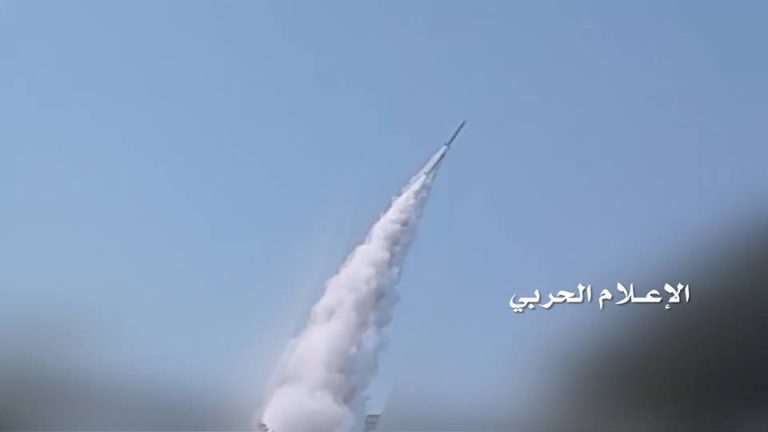 وبث الإعلام الحربي مشهدا للحظة إطلاق صاروخ الصرخة ثلاثة على معسكر أبو المض في جيزان.
