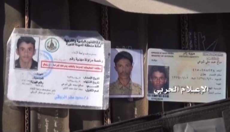 كما تظهر المشاهد بعض صور وبطائق للمنافقين الذين قتلوا إثر المواجهات الدائرة في صحراء ميدي حيث تدور مواجهات عنيفة لصد محاولات المرتزقة الزحف للسيطرة على مواقع الجيش واللجان ولكن دون جدوى.