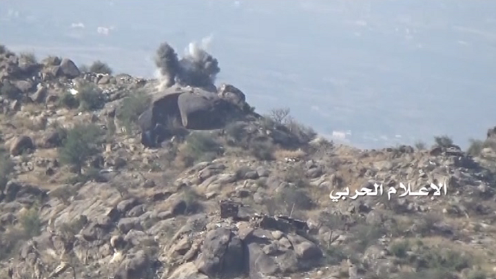 وزع الإعلام الحربي اليوم الجمعة مشاهد لقصف مدفعي للجيش واللجان الشعبية على مركز جلاح العسكري السعودي في جيزان.