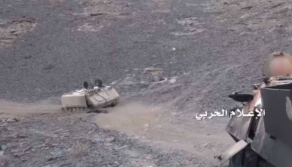 ويظهر في المشاهد تدمير مدرعتين من نوع برادلي في أحد المواقع السعودية التي تم السيطرة عليها غربي الشرفة بقطاع نجران، والتي تشهد عمليات تمشيط واقتحام على طول السلسلة الجبلية جنوب مدينة نجران.
