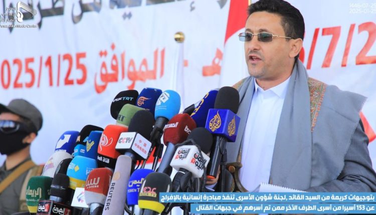 أعلنت اللجنة الوطنية لشؤون الأسرى، عن تنفيذ مبادرة إنسانية من طرف واحد تقضي بالإفراج عن 153 من أسرى الطرف الآخر بتوجيهات قائد الثورة السيد عبدالملك بدر الدين الحوثي.