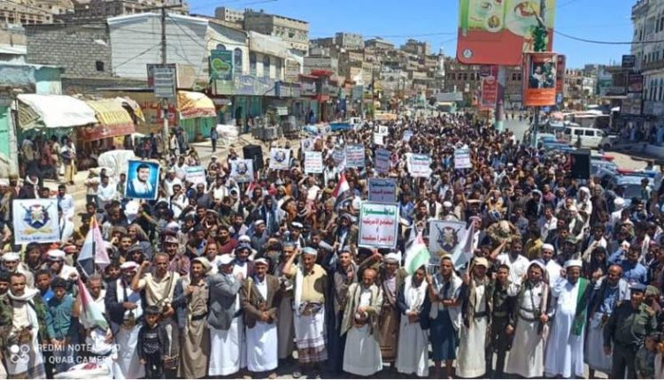 وأكد بيان صادر عن المسيرة الجماهيرية بمحافظة البيضاء، استمرار الشعب اليمني في الخروج المليوني إلى كل الساحات إيمانا منه بأنه عمل جهادي وتحرك مسؤول واستجابة لنداء الله تعالى والضمير الإنساني.