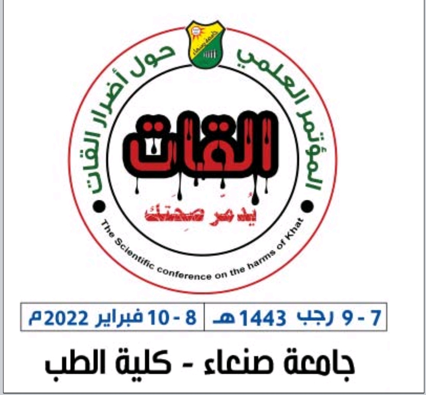 تبدأ الثلاثاء المقبل بالعاصمة صنعاء أعمال المؤتمر العلمي حول “أضرار القات على صحة الفرد والمجتمع، تنظمه في ثلاثة أيام كلية الطب بجامعة صنعاء.