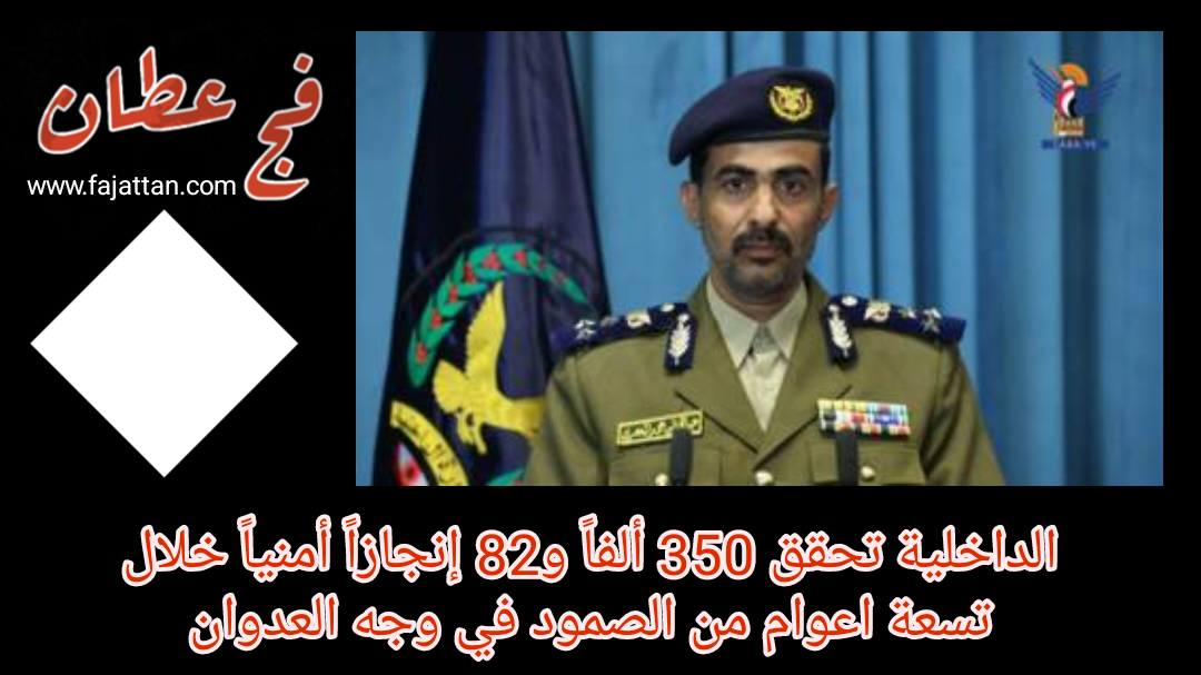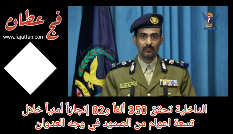 حققت وزارة الداخلية 350 ألفاً و82 إنجازاً أمنياً خلال تسعة أعوام من الصمود في العاصمة صنعاء والمحافظات.