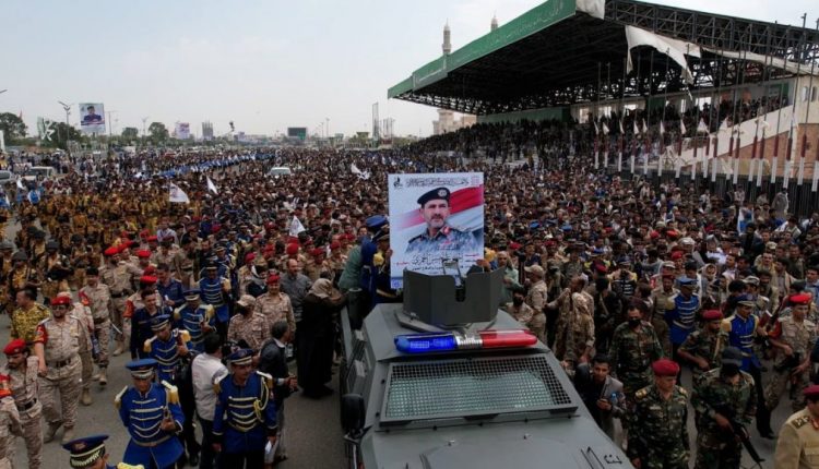 الرئيس المشاط يتقدم مشيعي جثمان قائد قوات الجوية الشهيد اللواء أحمد الحمزي