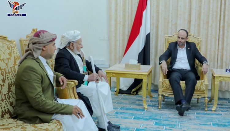 وأشاد الرئيس المشاط، بجهود الشيخ صالح القفري وإسهاماته المجتمعية في حل المشاكل وإصلاح ذات البين.