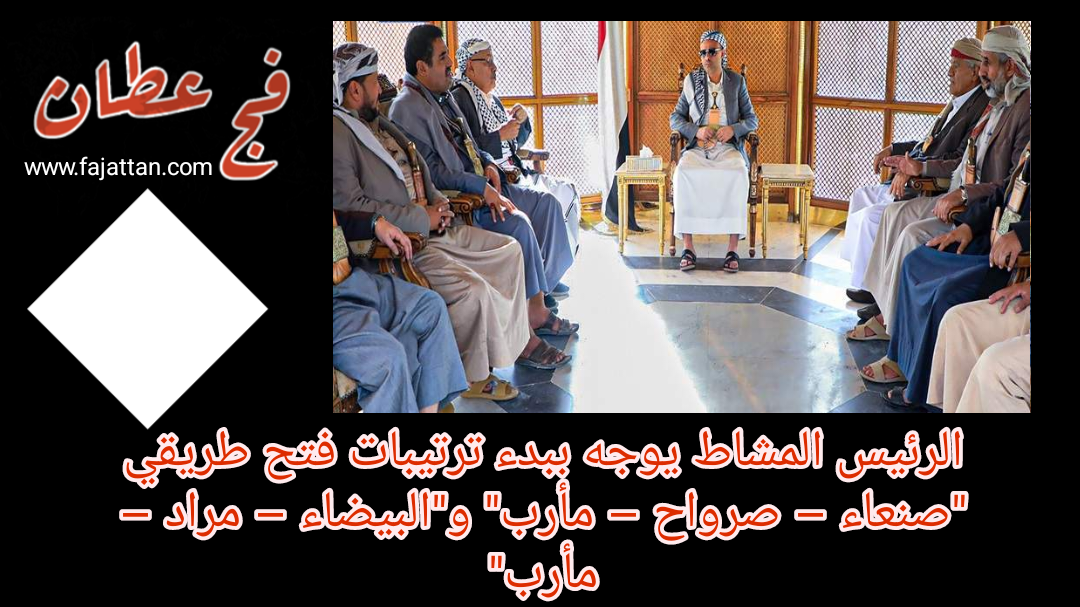 وجه رئيس المجلس السياسي الأعلى المشير الركن مهدي محمد المشاط الجهات العسكرية والسلطة المحلية بالبدء بالترتيبات اللازمة لفتح طريق صنعاء – صرواح – مأرب، وطريق البيضاء – مراد- مأرب.