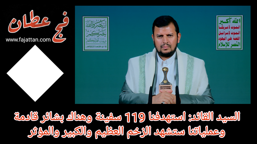 السيد القائد: استهدفنا 119 سفينة وهناك بشائر قادمة وعملياتنا ستشهد الزخم العظيم والكبير والمؤثر