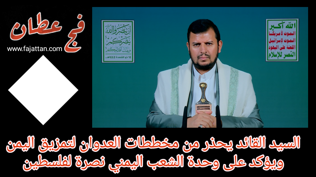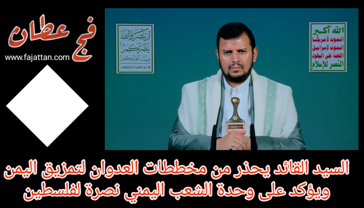 السيد القائد يحذر من مخططات العدوان لتمزيق اليمن ويؤكد على وحدة الشعب اليمني نصرة لفلسطين