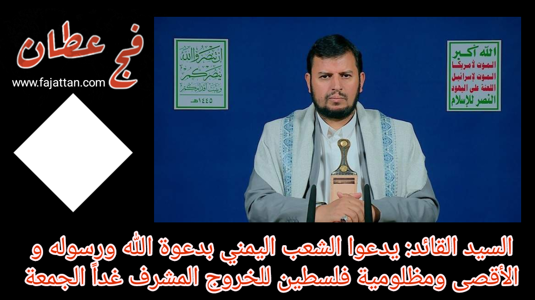 دعا السيد القائد عبدالملك بدرالدين الحوثي “يحفظه الله”،الشعب اليمني العزيز ، للخروج المشرف في الجمعة الثالثة من شهر رمضان المبارك نصرة للشعب الفلسطيني ، في صنعاء وبقية المحافظات الحرة حسب الترتيبات المعتمدة والساحات المعروفة.
