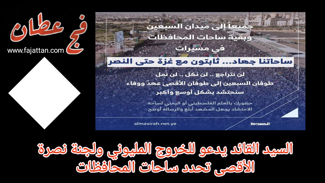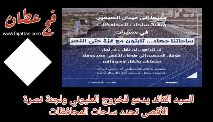 السيد القائد يدعو للخروج المليوني ولجنة نصرة الأقصى تحدد ساحات المحافظات